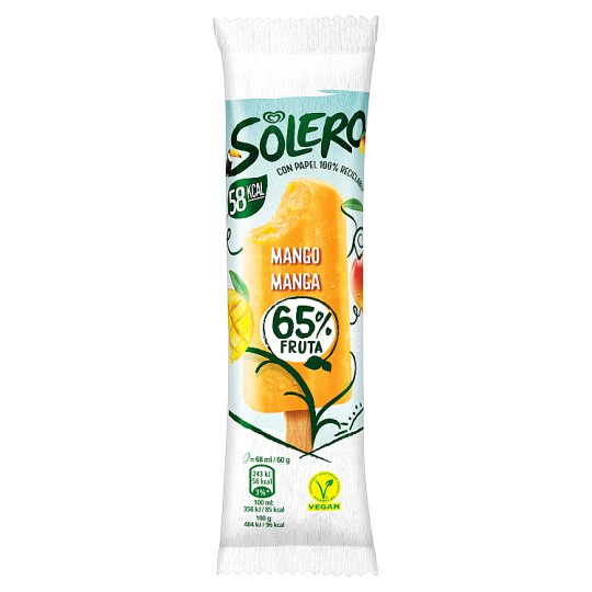 Découvrez ce délicieux sorbet plein fruit Solero avec 65% de mangue, dont des morceaux confits de mangue. Miam ! De quoi ravir vos papilles !